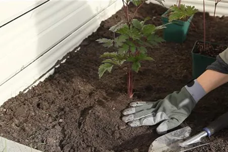 Stellen Sie die gut durchfeuchteten Pflanzen in gewünschter Anordnung auf das vorbereitete Beet, so sind noch Standortkorrekturen möglich. Setzen Sie nun die Pflanzen in ausreichend große Pflanzlöcher bodeneben ein und drücken Sie die Erde gut mit den Händen fest. Anschließend gründlich und durchdringend gießen.