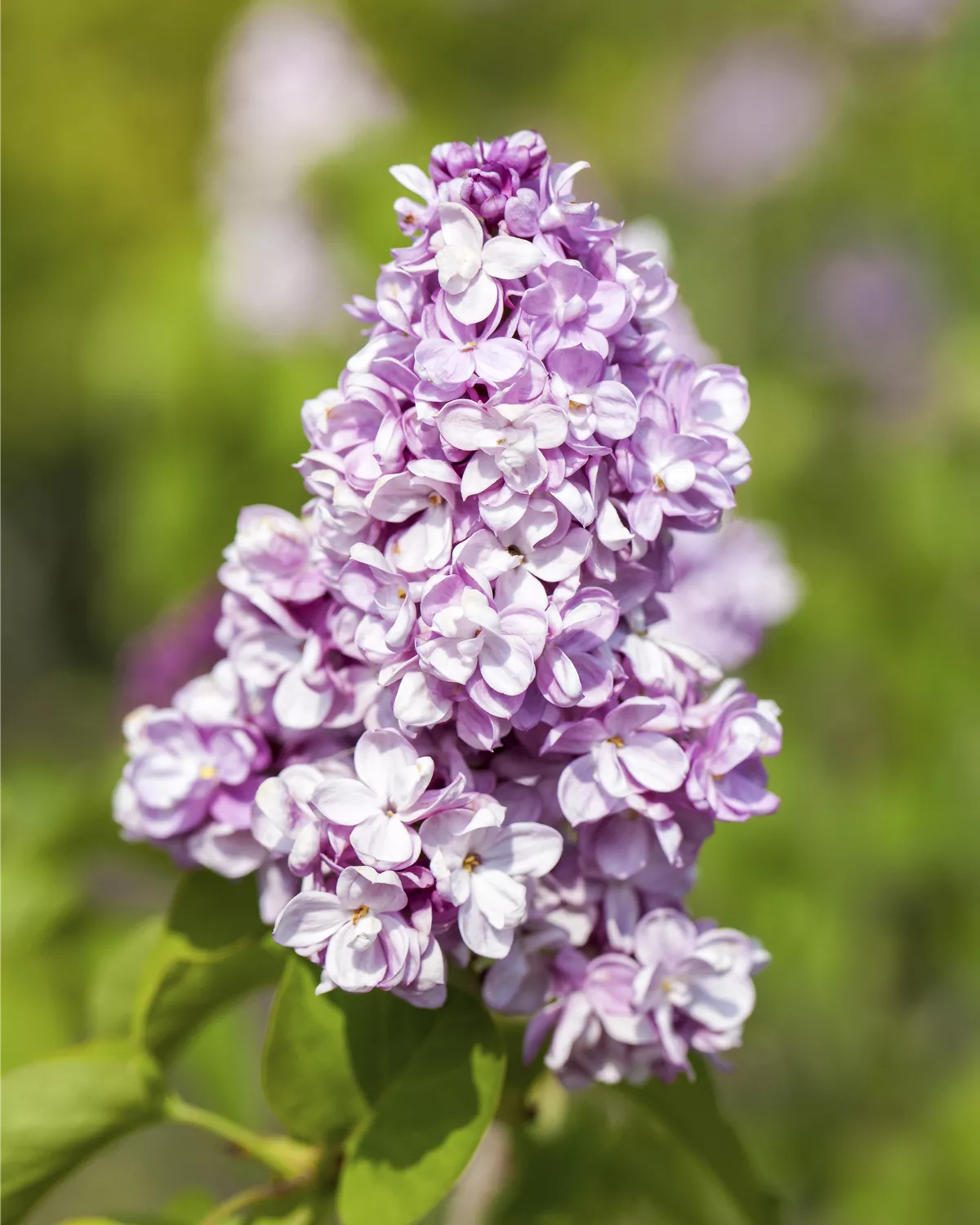 Der Garten-Flieder bildet lilafarbene, stark duftende Blüten von Mai bis Juni. Anordnung der Blüten in schönen Rispen.