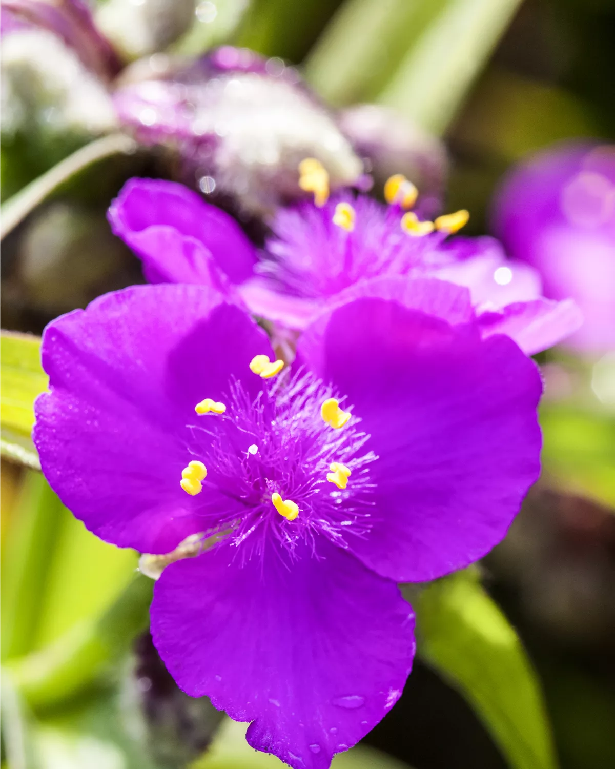 Die Garten-Dreimasterblume (Tradescantia andersoniana) bildet violette, ansehnliche Blüten von Juni bis September.