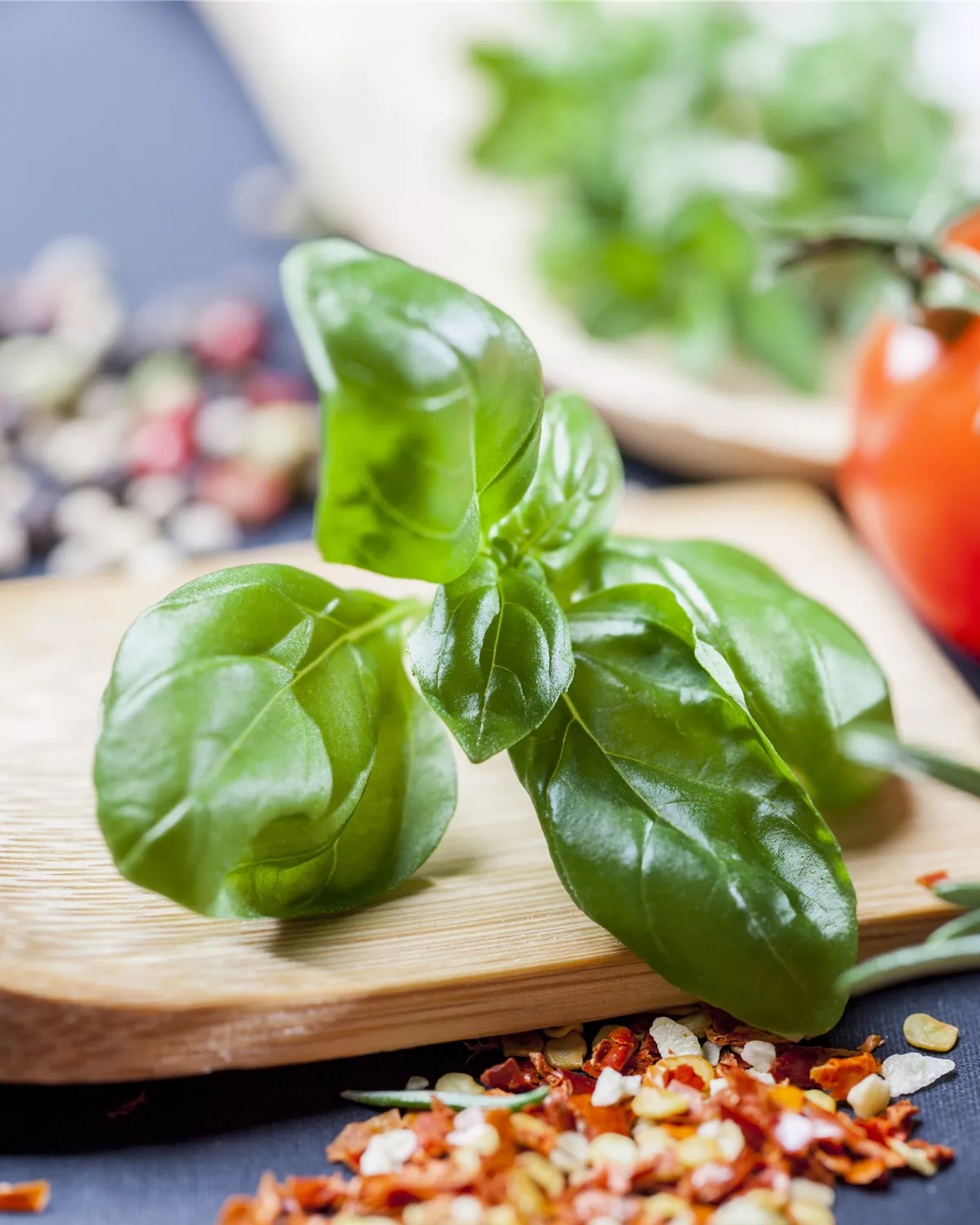 Die Blätter des Basilikum haben einen würzigen Geschmack.