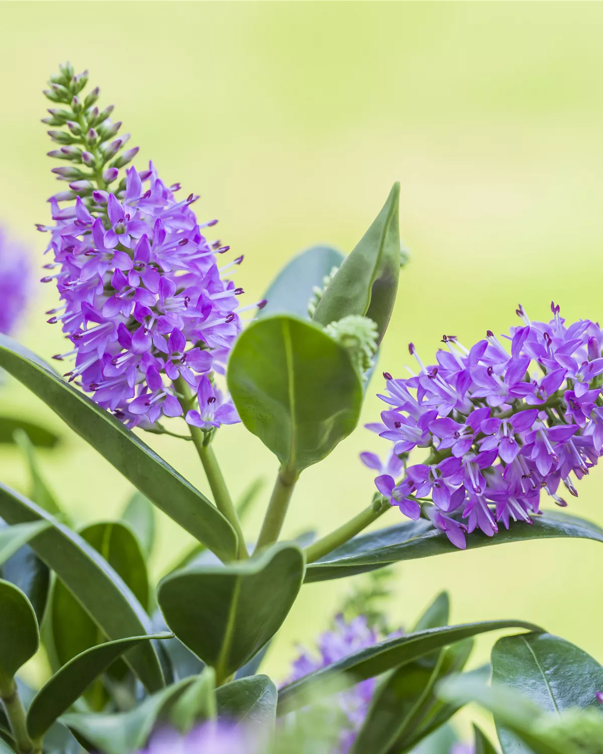 Eine Strauchveronika ist ein sehr dekoratives Element auf einer Terrasse. Zwischen den länglichen Blättern klettern im Hochsommer große, lippenartige Blüten hervor, die mit ihrer violetten Farbe wunderschöne kräftige farbige Streifen in dem immergrünen Laubgehölz erzeugen. Das buschige Wachstum und die Höhe von 40 bis 60 Zentimetern macht diese Veronika zu einem erstklassigen Kandidaten für einen Kübelbewohner.
