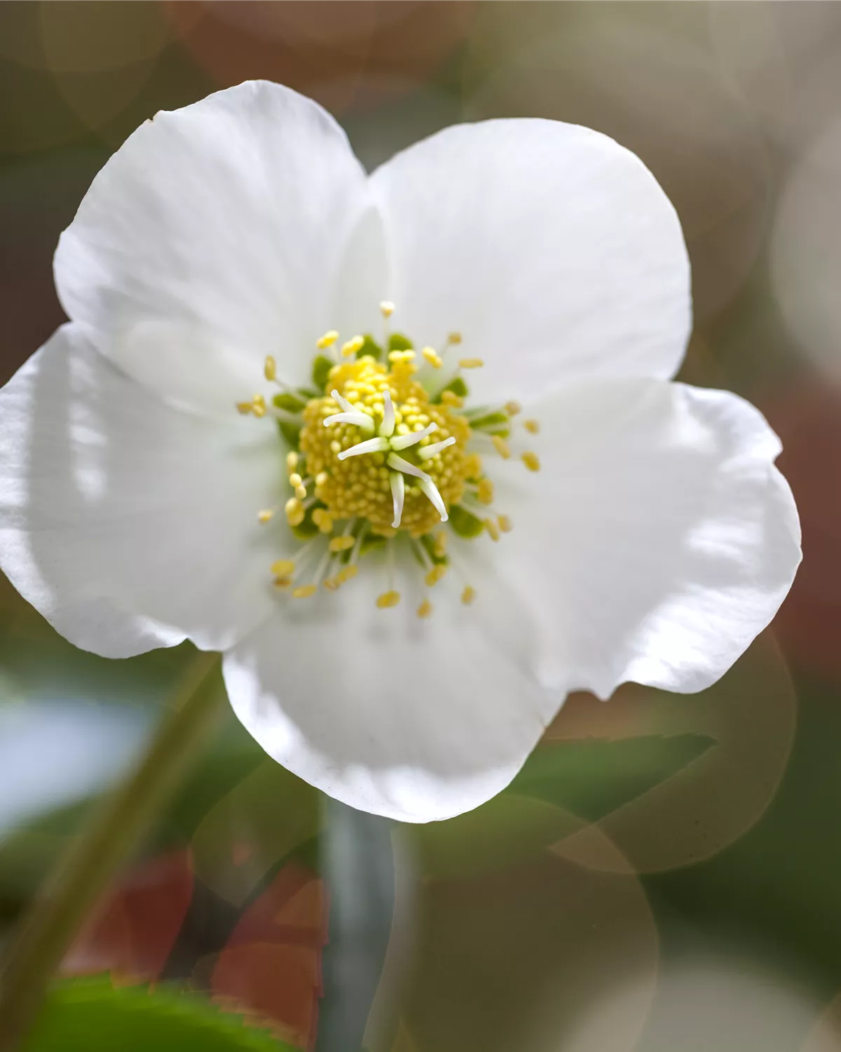 Die Christrose (Helleborus niger) bildet weiße, ansehnliche Blüten von Januar bis März.